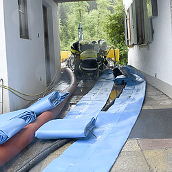 „Deininger Weiher droht überzulaufen, angrenzende Gebäude in Gefahr.“