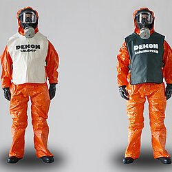 Der Anzug bietet Schutz gegen Kontamination von A, B und C-Gefahrstoffen, also atomaren, biologischen und chemischen Gefahrstoffen, und wird deshalb immer bei erhöhter Gefahr der Kontamination mit diesen Stoffen getragen. Zur Dekontamination wird der Spritzschutzanzug mit einem Filtergerät und einer Funktionskennzeichnung (schmutzig/sauber) getragen. Die Schutzkleidung entspricht Körperschutz Form 2.